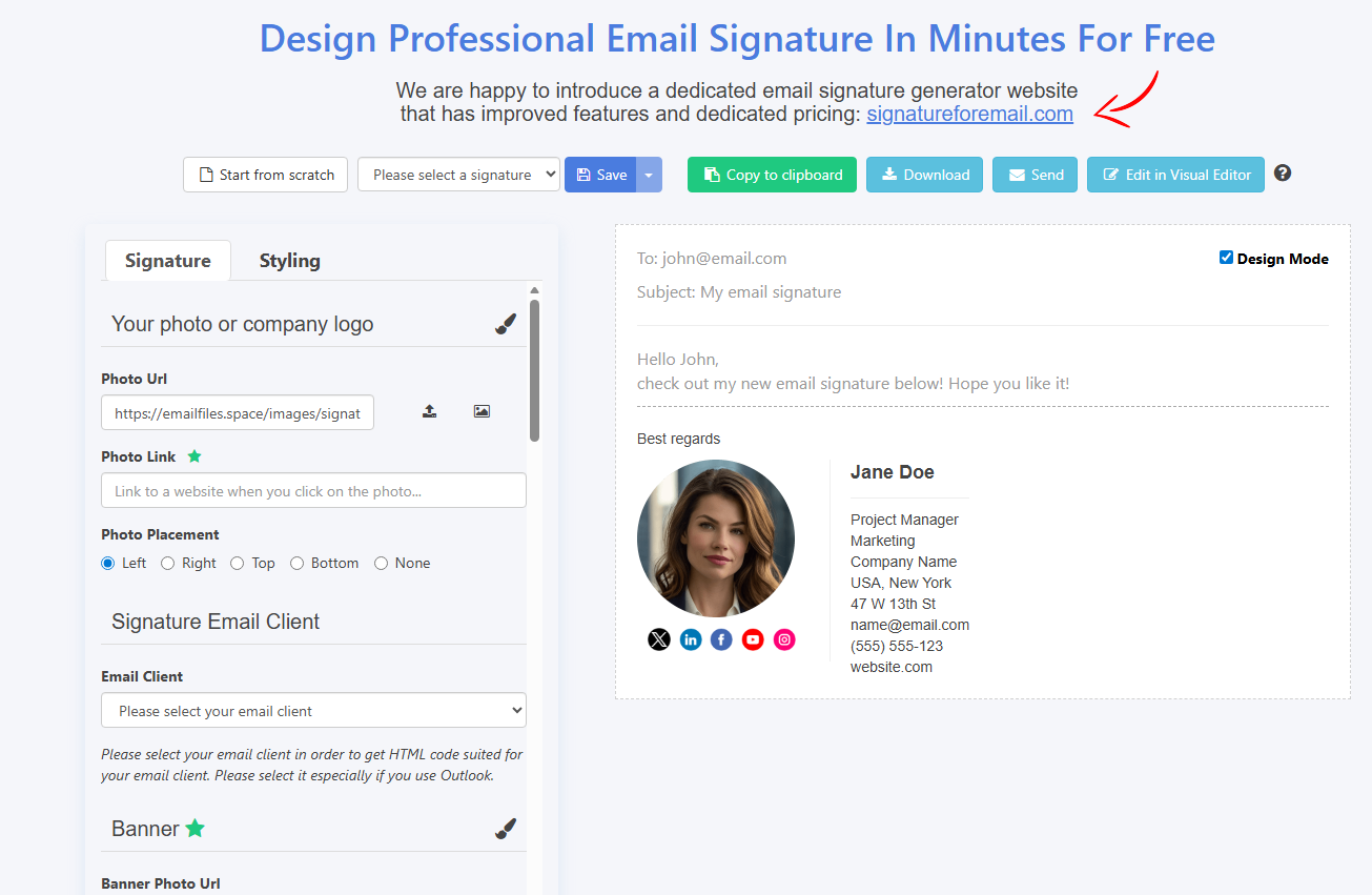 The Email Signature Designer from WordtoHTML is a free, easy-to-use tool that helps you create clean, professional Office365-ready signatures in minutes. With simple drag-and-edit fields, you can add your logo, brand colors, social icons, contact details, and styled text—no coding needed.