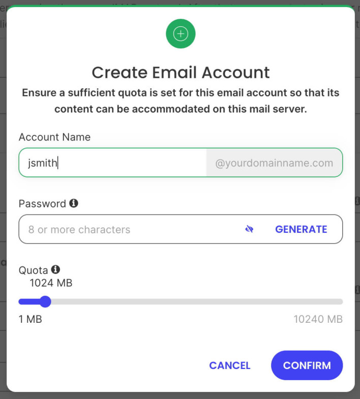 Note that by default the newly created email account will have its quota set to 1024MB. You have to change the quota value to be higher than the email account’s quota usage on the remote server to ensure that all messages will be transferred over.