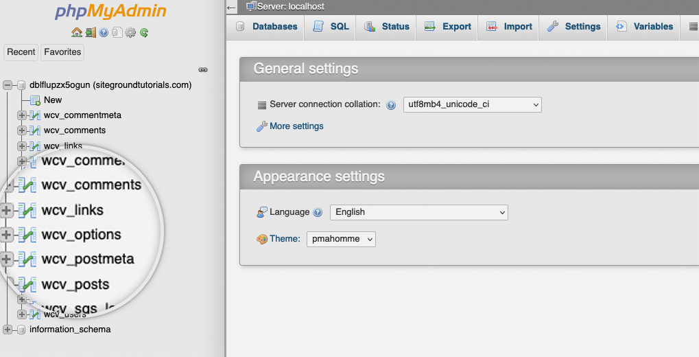 Note that this table may have a different prefix instead of wp_. You will see the correct prefix of the database once you access the phpMyAdmin tool and select the WordPress database.